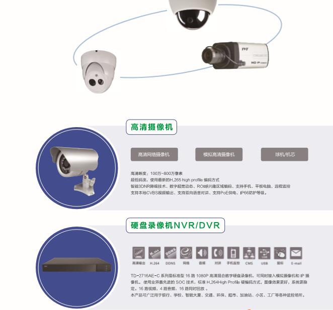 各類IPC類攝像頭產品、DVR、NVR及錄像硬盤和視頻監控周邊產品。