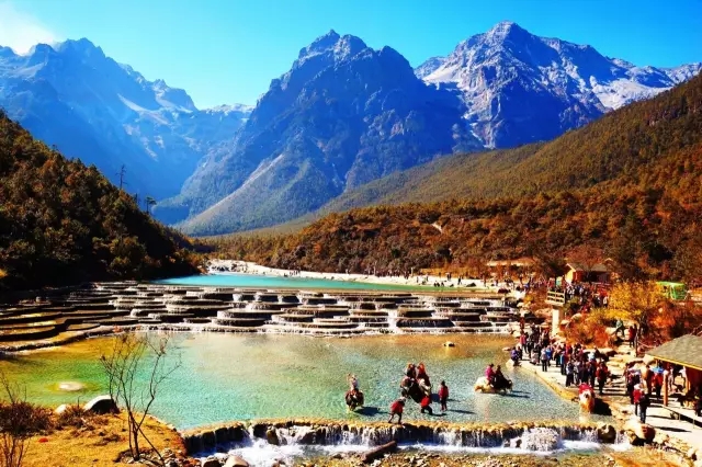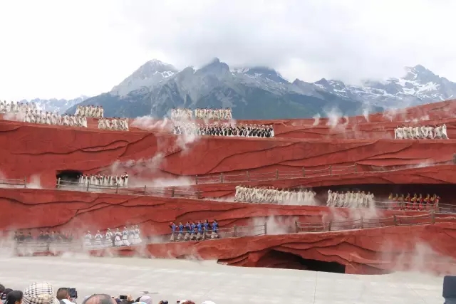 中午在海拔3100米的玉龍雪山上,觀看大型實景演出《印象麗江》,通過演出我們看到了云南少數(shù)民族獨特的《古道馬幫》、《對酒雪山》、《打跳組歌》、《鼓舞祭天》,了解到了依舊盛行“母系家庭”生活方式的摩梭人以及特有的婚姻方式。