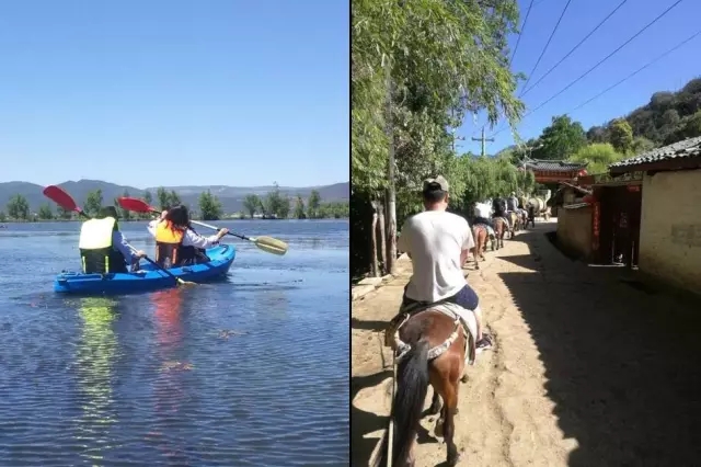 6月5日,我們來到拉市海茶馬古道,首先挑選了馬匹,去體驗納西族的馬幫生活,騎行在千年古道,可以想見,古道的沿途崎嶇,以及峻秀的山巒、棧道,還有大漠藍天、叢林草莽或不毛之地,那是怎樣一種驚心動魄的蒼茫,一種曠世沉寂的生死艱辛,一種華夏民族生生不息的堅韌跋涉,更是一種披荊斬棘開天辟地的創(chuàng)業(yè)精神。騎完馬,來到拉市海劃船,這是一個不大的湖,湖面卻很平靜,有許多鴨子在嬉戲,在這里簡簡單單,藍天白云,悠然自得,可以忘記很多世俗的紛紛擾擾。